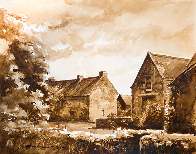 mise a jour 06:17-35 Publié le 10 juin 2017 à 650 × 511 dans mise a jour 06:17-35 Vieilles bâtisses au Hahon-Morbihan (brou de noix sur papier)