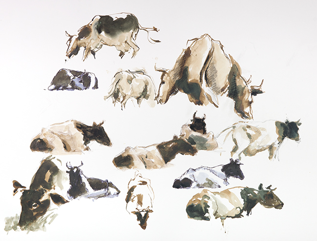 morbihan 05-2018-14 Publié le 1 juin 2018 à 650 × 494 dans Morbihan in pace Morbihan, Plouharnel, vaches au pré (encre)