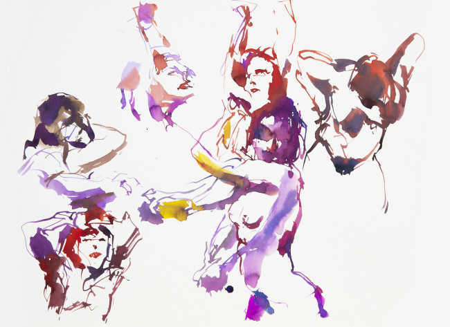 Encres et pinceau sur papier aquarelle